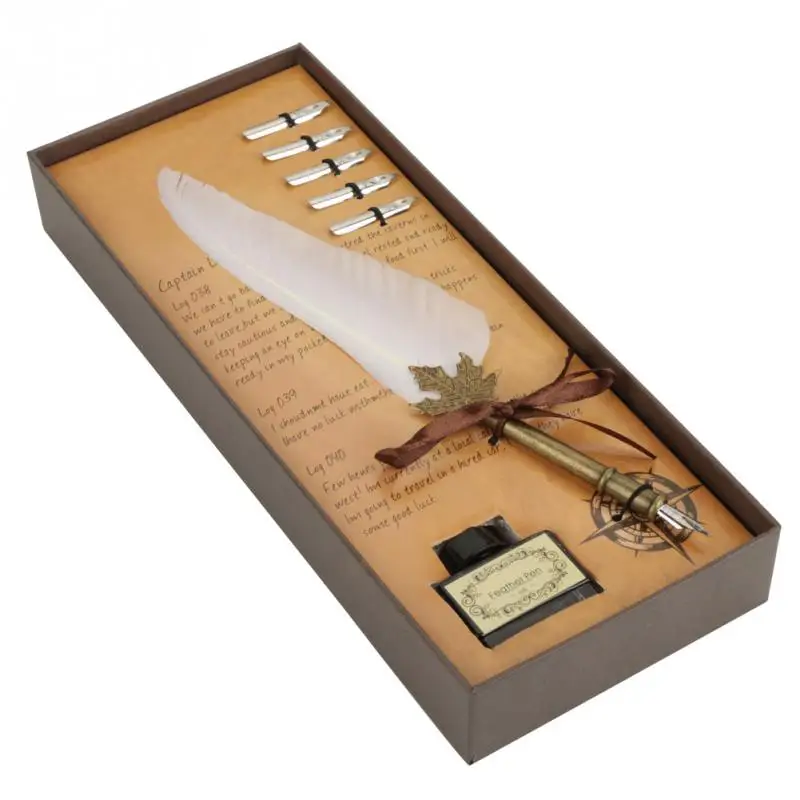 Это перьевая ручка, набор с 6 перьевыми перьями, удовлетворит ваши многократные цели письма. Изготовлено из натурального пера, удобно держать. Элегантный, антикварный и уникальный, идеальный подарок для вашего друга, членов семьи и учителя.