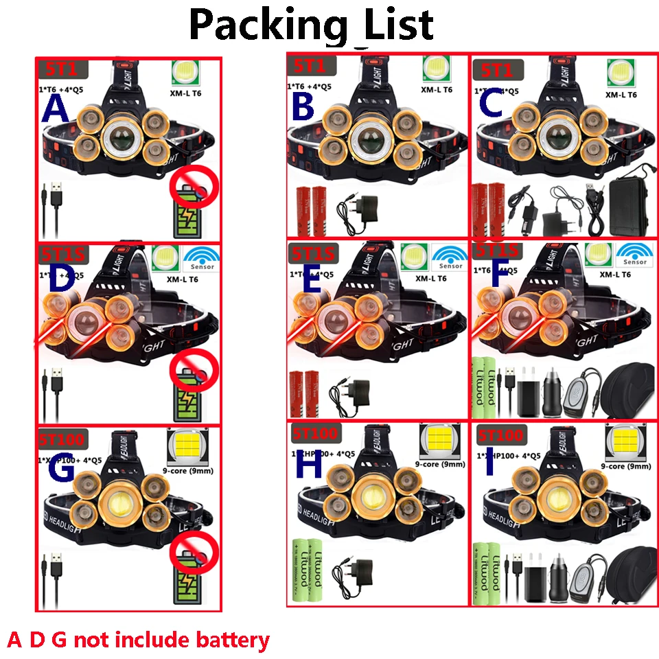 1: This product is divided into three models. You can choose zoom 5LED Headlamp/5 led with sensor switch, or you can choose 3/5LED Headlamp no zoom with no have the sensor switch.