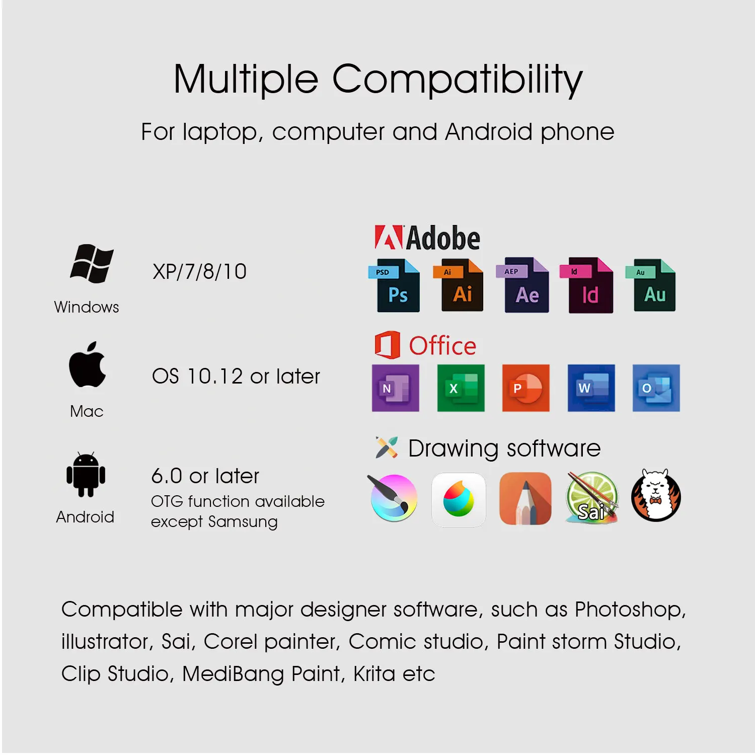 Идеально подходит для онлайн-обучения и обучения. Планшет VEIKK совместим с Microsoft Office APP 2007 или выше. Включая Word, Excel, Power Point и OneNote. И PDF.Посылка заключается в том, что ваш компьютер является системой Windows (нет необходимости загружать драйвер veikk)