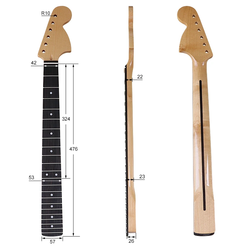 Гриф для электрогитары с высоким блеском и средней линией канадского клена, гриф для электрогитары со средней линией сзади, Ширина каблука 5,7 см