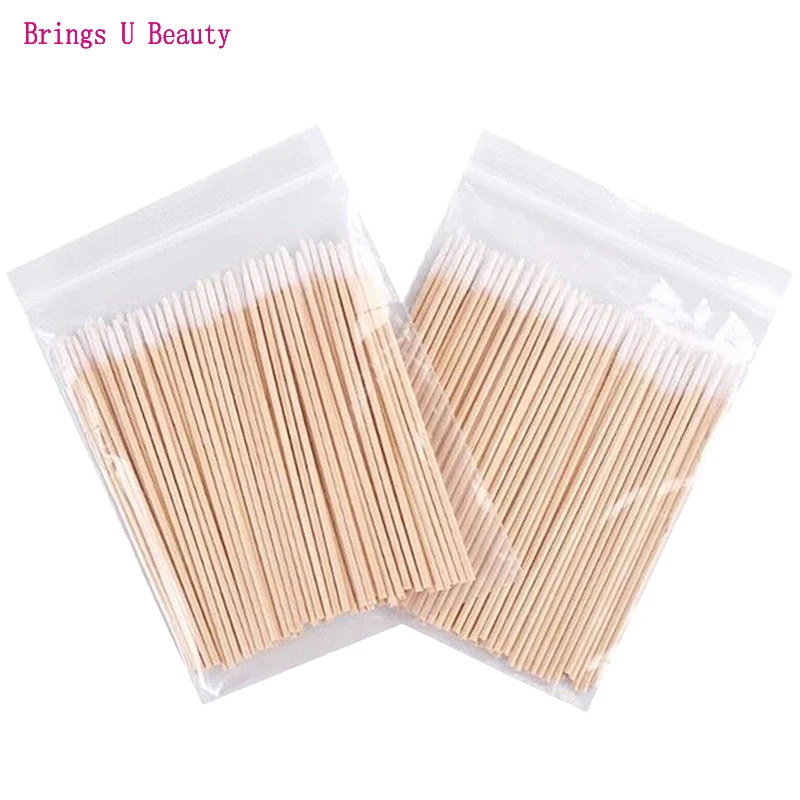 300PCS/bag Short Wood Handle Small Pointed Tip Head Cotton Swab Eyebrow Tattoo Beauty Makeup Color Nail Seam Dedicated Dirty Picking Cleaning Swab Sticks