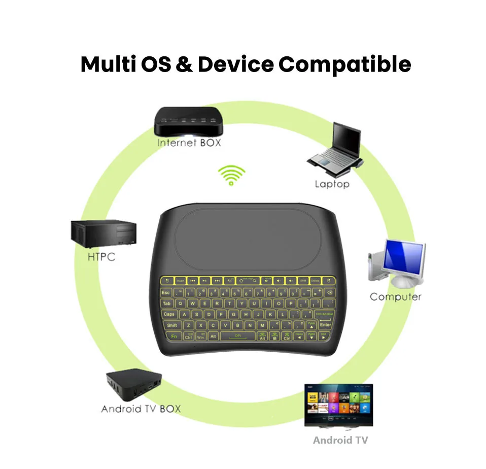 A:D8 супер английская клавиатураПитание отLi-onАккумулятор (режим 2,4G + режим BT)B:D8 супер Русская клавиатураПитание отLi-onАккумулятор (режим 2,4G + режим BT)C:D8 Plus Русская клавиатураAAAАккумулятор (режим 2,4G + режим BT)D:D8 Plus клавиатура на английском языкеAAAАккумулятор (режим 2,4G + режим BT)Подсветка-3 в 1 Мультимедийный пульт дистанционного управления-Самая мини беспроводная клавиатура с многофункциональным: Сенсорная панель + мышь + клавиатура + Радиочастотное беспроводное соединение 2,4G
