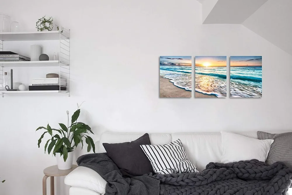 3 Панели Современный морской песок пляж закат картина маслом картины Домашний Декор куадро стены искусства рисунок заката на холсте принты без рамки