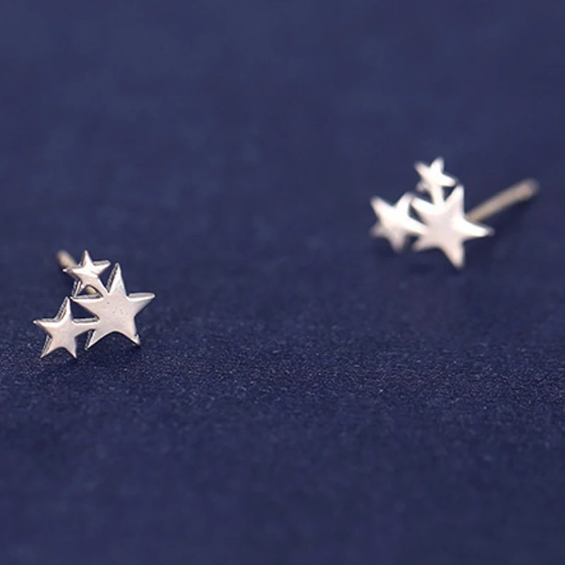 Серьги-гвоздики, розовое золото, гипоаллергенные, минималистичные ювелирные изделия, серебро, бесплатная доставка, золотые три звезды, милые женские серьги из нержавеющей стали