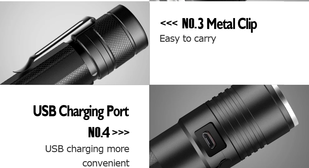 1. Телескопический зум 2. Батарея питания 3. Металлический зажим 4. Зарядное устройство USB