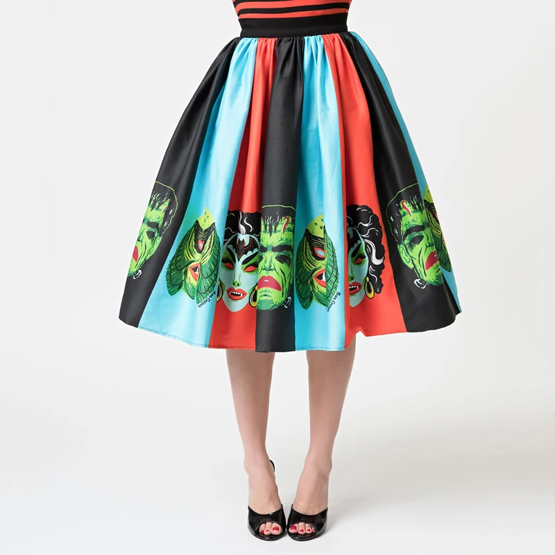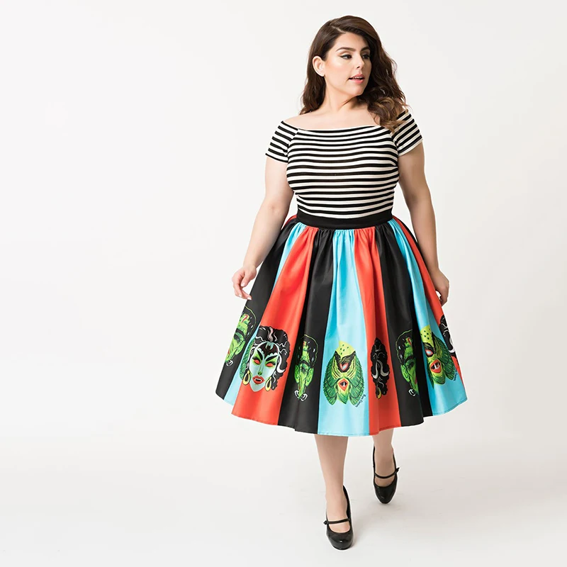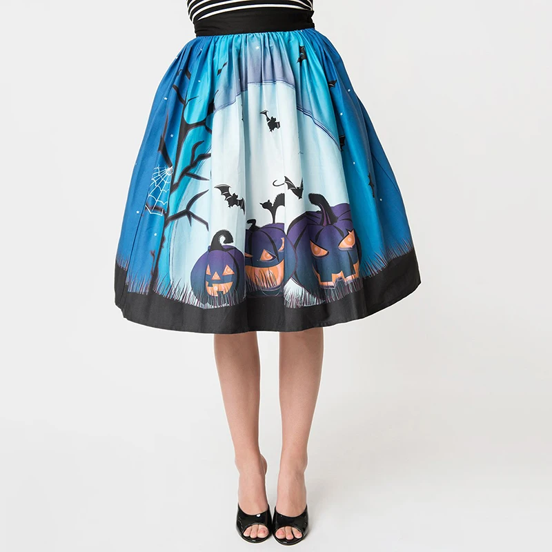 Винтажные юбки в стиле ретро, женская одежда в стиле Хэллоуин, пышные узоры, летучая мышь, пауки, тыква, Юбка-миди с завышенной талией