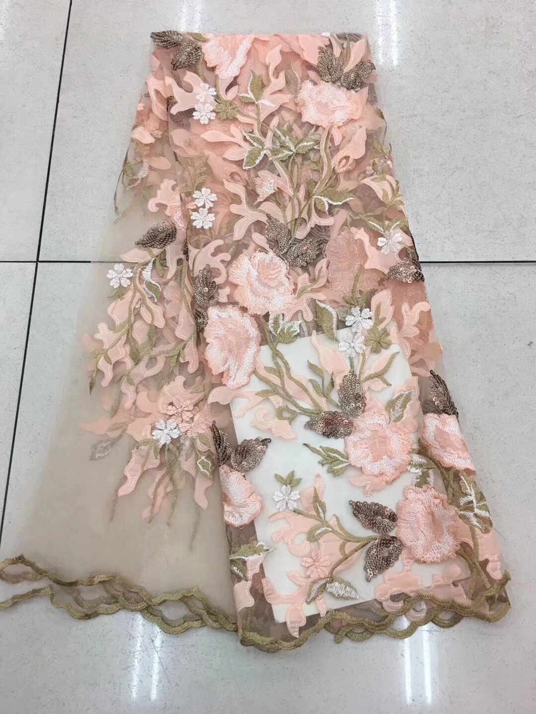 Африканская кружевная ткань, 3D цветок, высокое качество, 2019, французский тюль, кружевная ткань, аппликация в нигерийском стиле, Сетчатое кружево для свадебного платья HX11AUS $7,01 /Двор