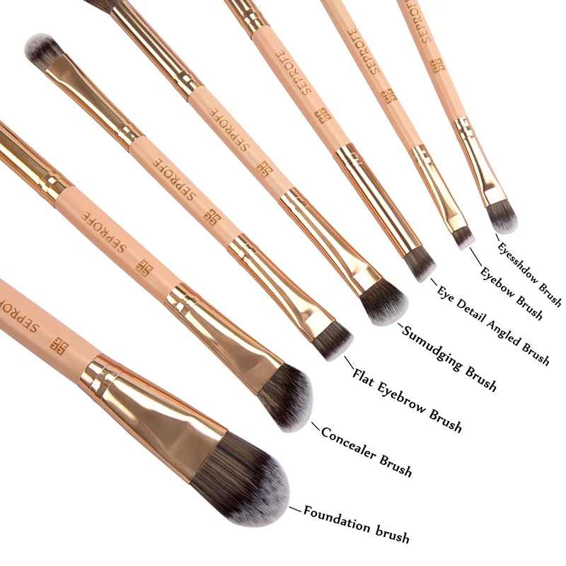 SEPROFE Новинка, 7 шт., кисти для макияжа, розовое золото, двойная контурная подводка для глаз, тени для век, основа для бровей, макияж, кисть с кожаным чехлом