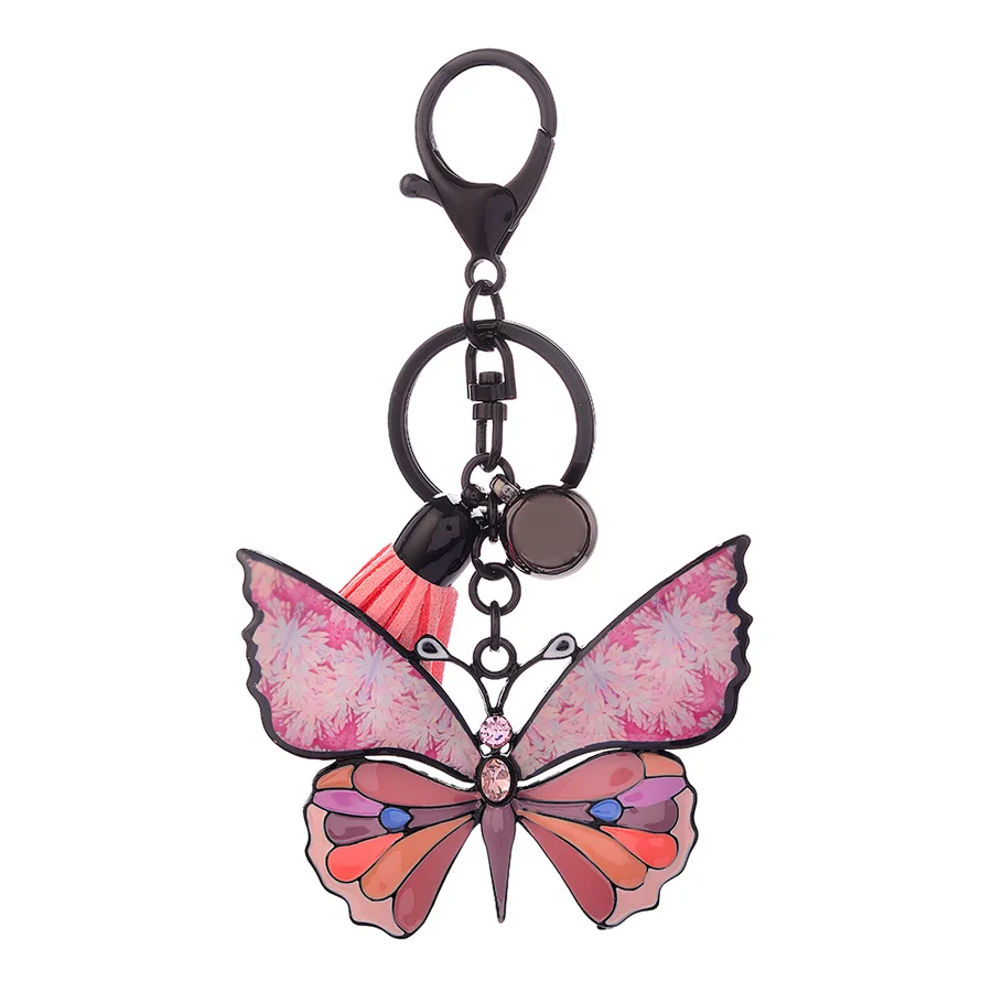 Женский брелок с розовой бабочкой, модный эмалевый брелок из цинкового сплава, винтажный Шарм-брелок с металлической подвеской, 2019