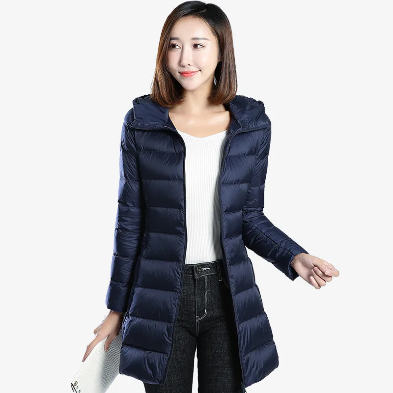 Зимняя женская верхняя одежда 2018 Новый пуховик женский средней длины большой размер тонкий с капюшоном белый утиный пух женские парки Cw556