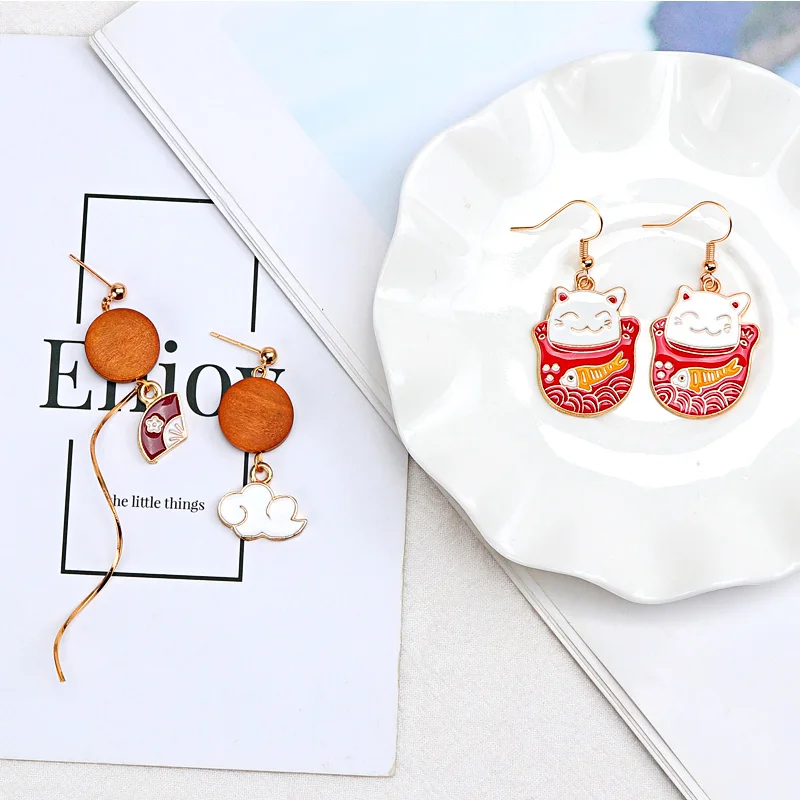 Японский стиль, милый кот забавный кролик вишни женские серьги модные милые Висячие серьги для женщин бижутерия; серьги-подвески