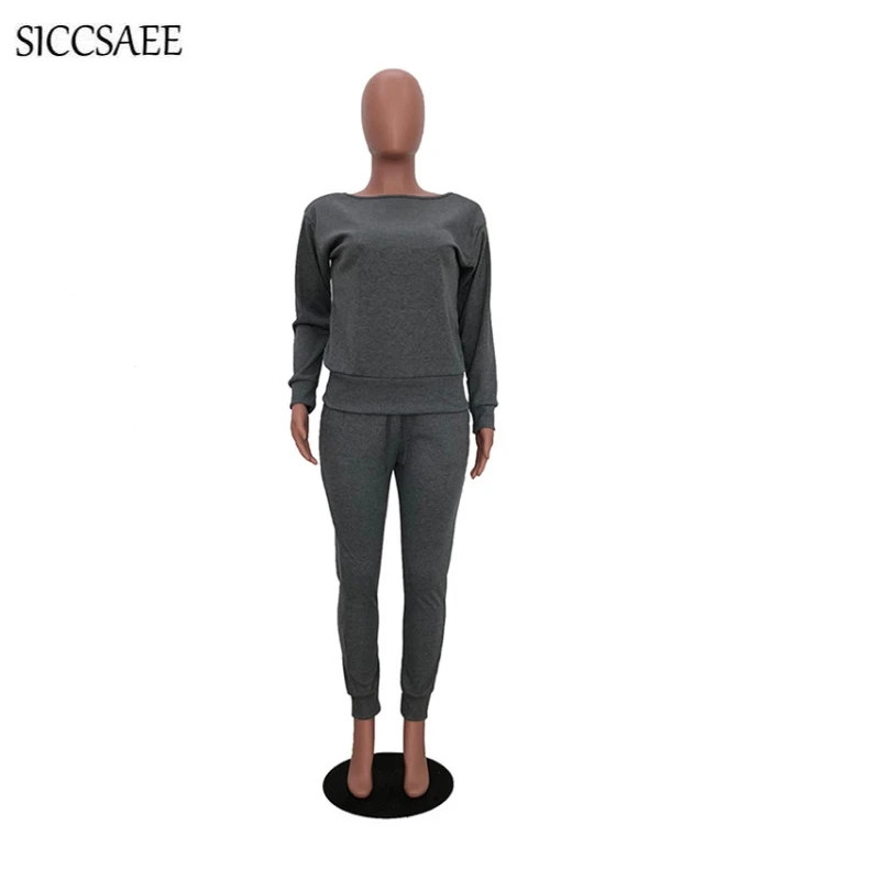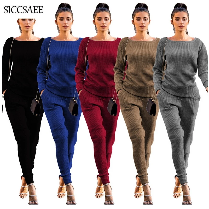 Женский трикотажный костюм оверсайз из двух предметов, осенне-зимний спортивный костюм, пуловер и штаны, свободные комплекты