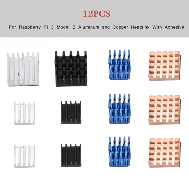 VBESTLIFE 12 шт. Raspberry Pi 3 радиатор медный алюминиевый радиатор кулер комплект с клеем для Raspberry Pi 3 Model B