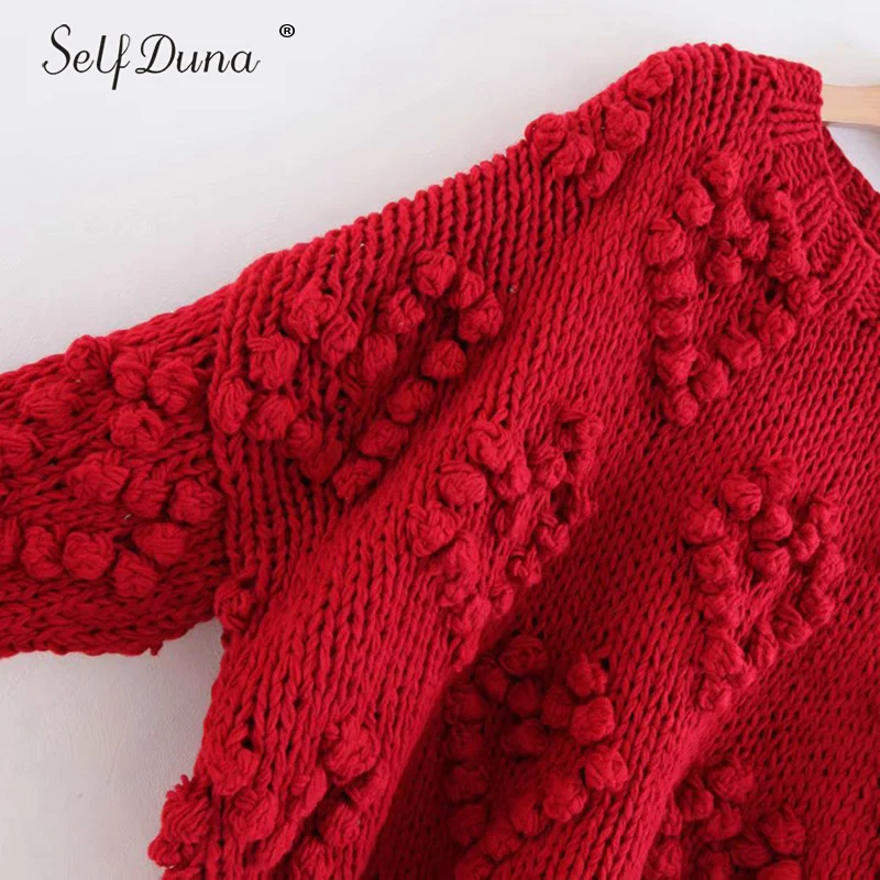 Женский трикотажный свитер-пуловер Self Duna, повседневный свободный свитер бежевого и красного цветов на осень-зиму