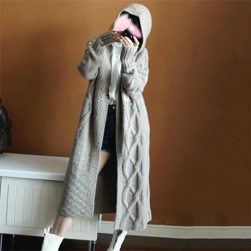 Осенне-зимний вязаный кардиган 2018 Новое Женское пальто с капюшоном кашемировый кардиган свитер утолщенный мягкий длинный вязаный жакет LDT676