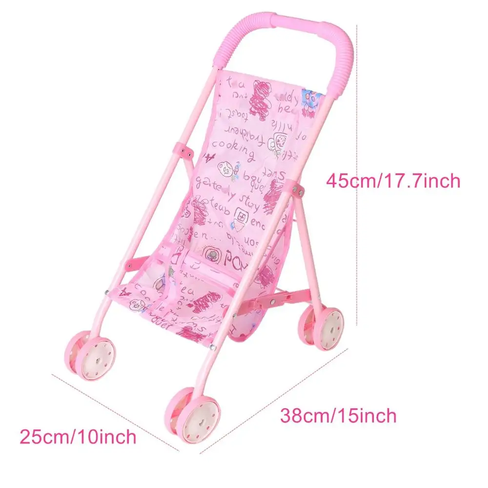 Описание товара: -- Материал: металлическая трубка, экологически чистый материал ABS и плотная ткань. Прочный и прочный. -- Размер: (в сборе) 38x25x45 см -Коляска может вместить кукол размером до 16 дюймов. Характеристика: -Мягкая резиновая ручка: защищает нежные руки ребенка. -- Двухколесный дизайн: он оснащен двухколесным дизайном для улучшения баланса. -- Портативный дизайн: можно сложить, легко хранить. Преимущества для детей: -- Ребенок учится имитацией, эта игрушка на колесиках является идеальным инструментом, чтобы они заинтересовались мамами в ролевых играх и куклах. Удовлетворить их Желание подражать и ролевые игры. -Это может сделать детей наслаждаться и развивать ответственность и другие навыки от заботы о кукле, и это идеальный подарок для ребенка. -- Это когнитивный инструмент и хорошая игрушка для ролевых игр.