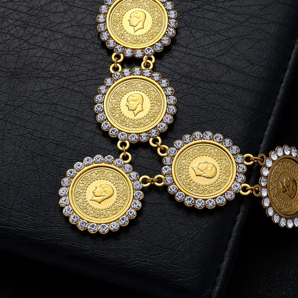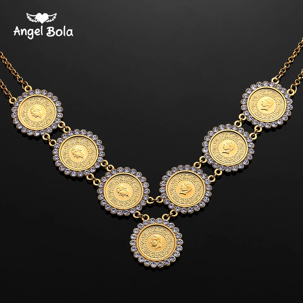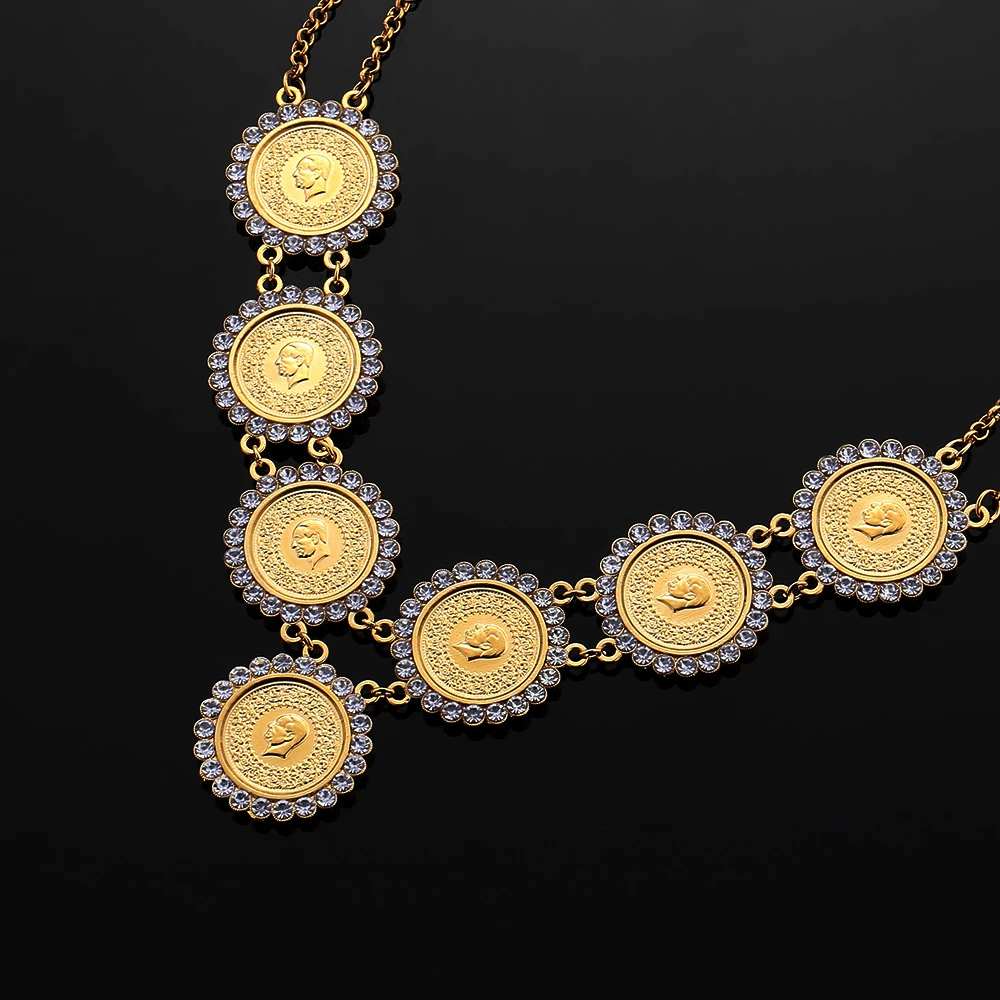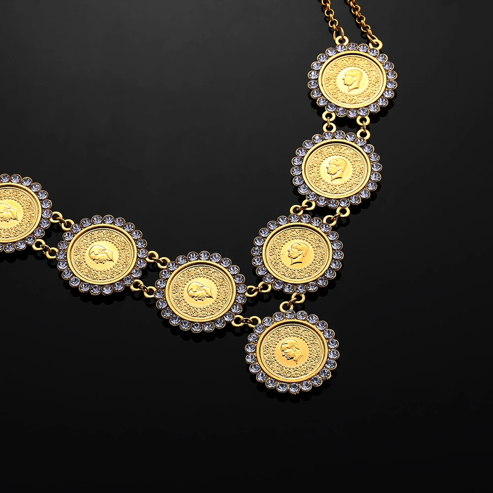 Хрустальное мусульманское Новое турецкое ислам ожерелье для монет для женщин, подарки золотого цвета, арабские монеты, ювелирные изделия, оптовая продажа, подвески турка