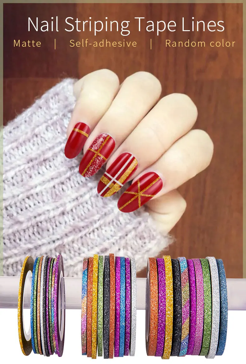 10 рулонов Блестящий скраб для дизайна ногтей чередование ленты линии наклейки Советы украшения DIY самоклеющиеся Переводные инструменты Маникюр 1 мм 2 мм 3 мм