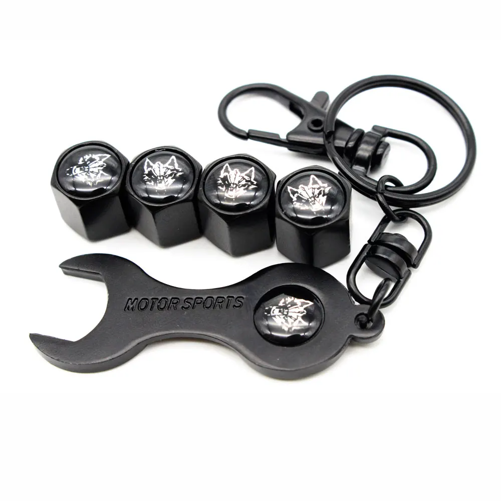 Посылка включает в себя: 5 шт./компл. (4 шт. шток клапана шины автомобиля воздушные колпачки + 1 шт. брелок для ключей) * колпачки для автомобильных колес в стиле волка с гаечным ключом