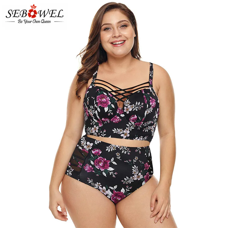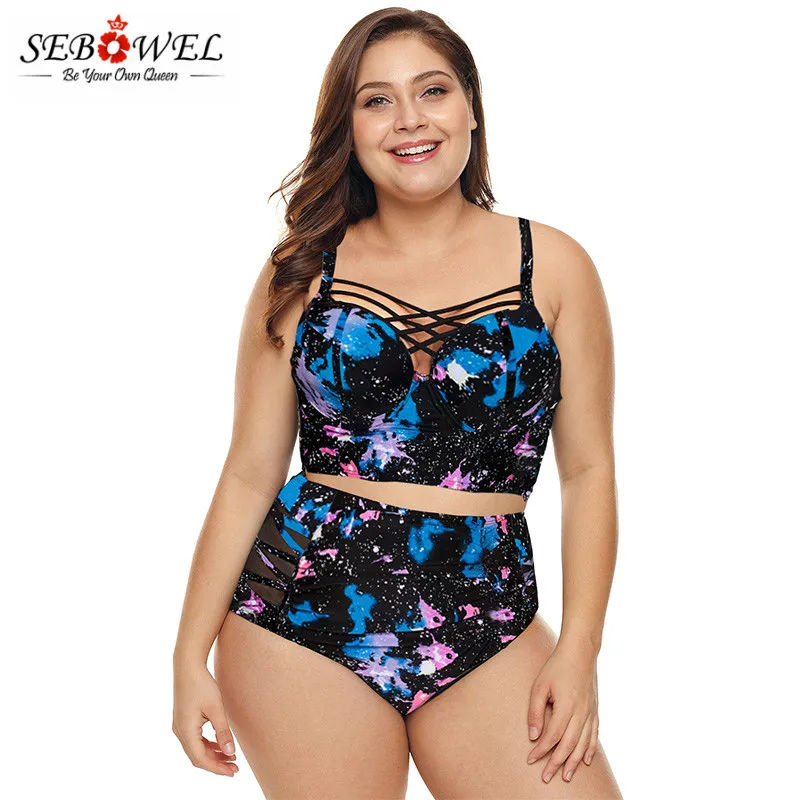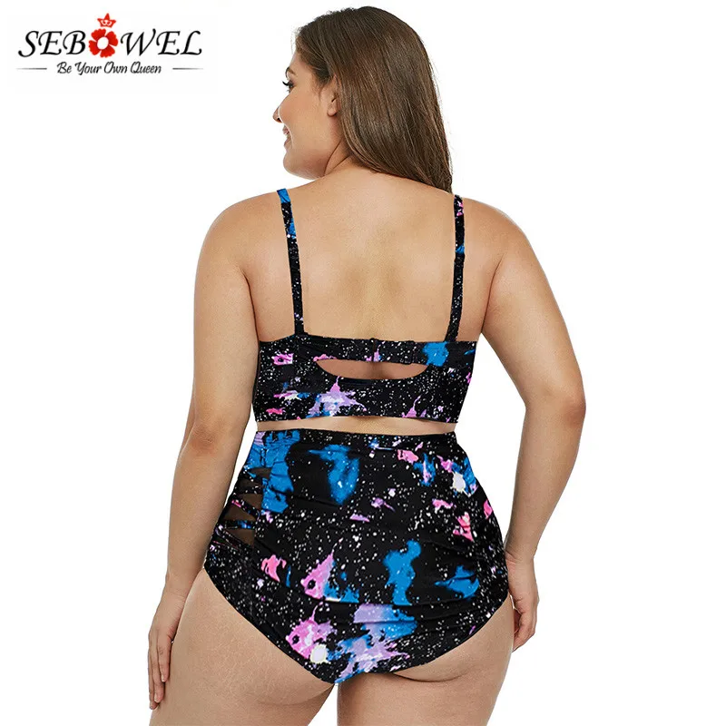 SEBOWEL размера плюс женские Купальники пуш-ап бюстгальтер + Высокая талия купальники бикини 2021 женский раздельный купальник комплект из 2 предметов пляжная летняя одежда