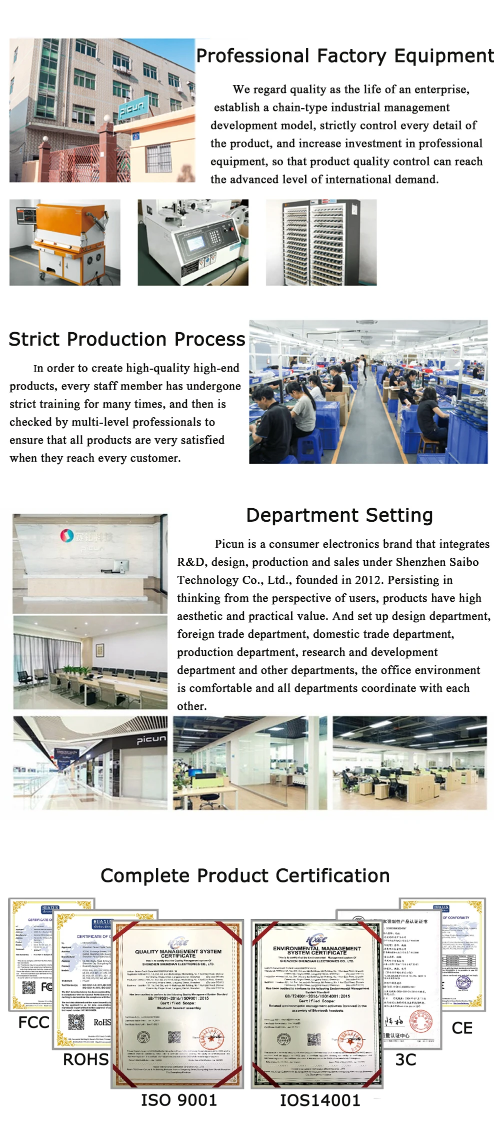 Picun имеет тысячи сотрудников, и ее бизнес охватывает многие страны по всему миру. У нас есть сильная система контроля материалов, система производства и система контроля качества, и наши продукты были сертифицированы BQB, CE, ROHS, FCC и TELEC и т. д.В Picun мы страстно работаем над созданием продуктов с простотой и удобством использования. Мы общаемся и прислушиваемся к нашим клиентам и ценим все конструктивные отзывы от них, чтобы улучшить нашу продукцию и обслуживание.