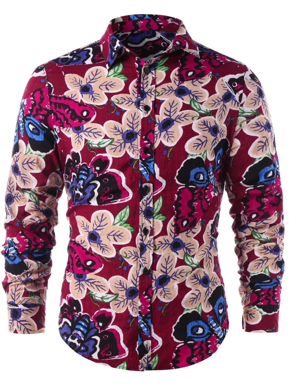 2018 летние модные мужские облегающие мужские рубашки с длинными рукавами, принт бабочки на цветах, рубашка на пуговицах Тип рубашек:Повседневное рубашки для мальчиков