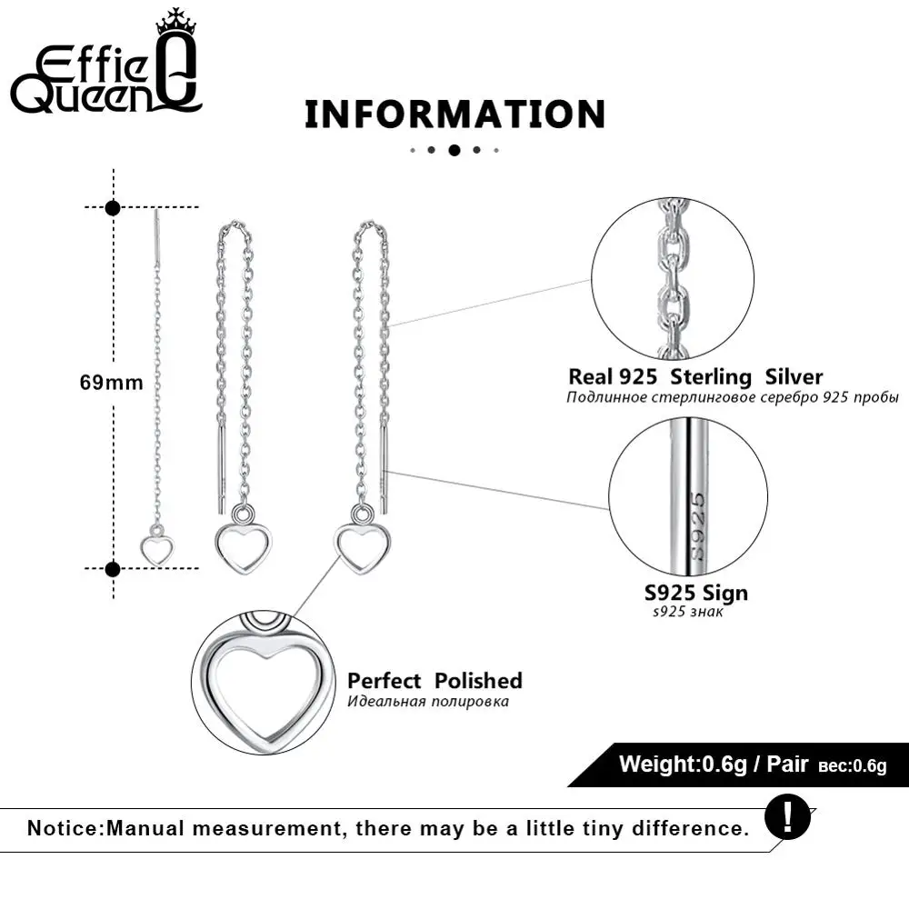 Женские серьги-капли Effie Queen из стерлингового серебра 925 пробы, романтические серьги в форме сердца, модные ювелирные изделия оптом для женщин KSE77
