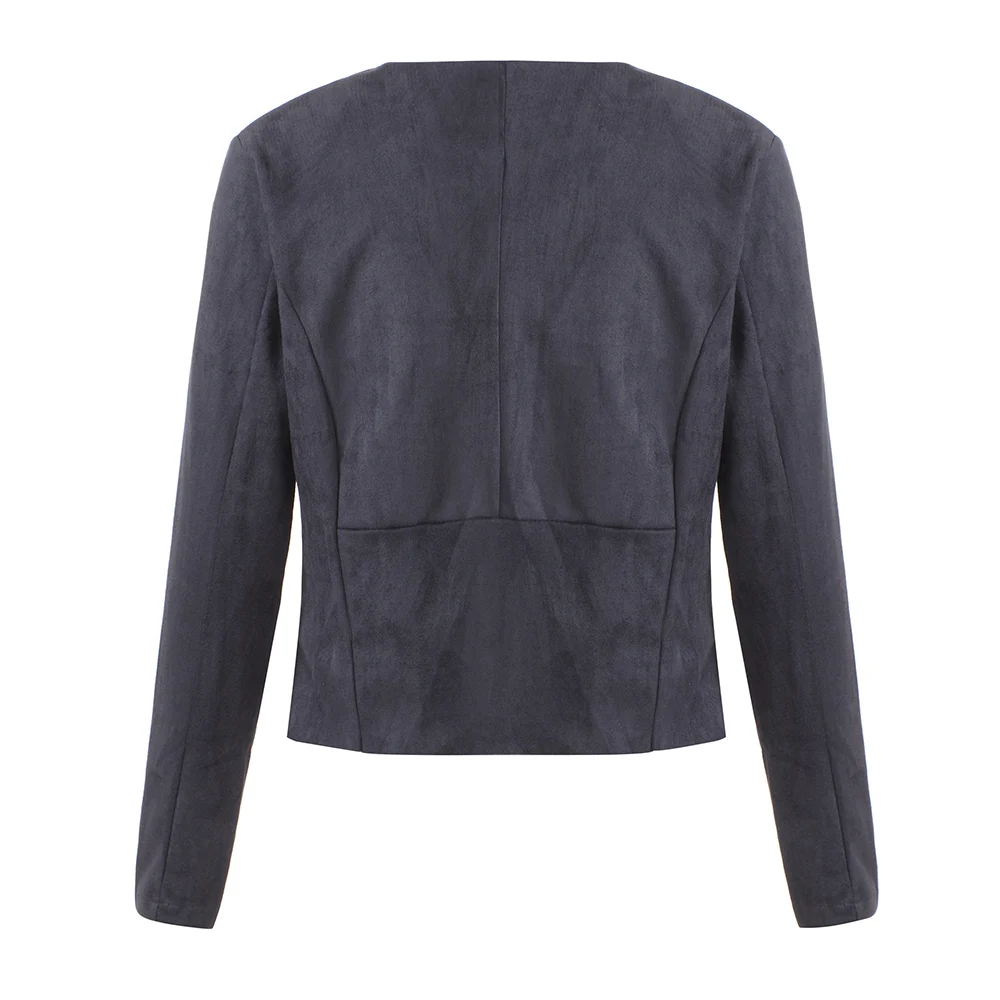 Модные женские Куртки из искусственной замши, осеннее пальто в стиле Дастер, короткая куртка, Байкерская Женская однотонная куртка с длинным рукавом и отложным воротником, пальто