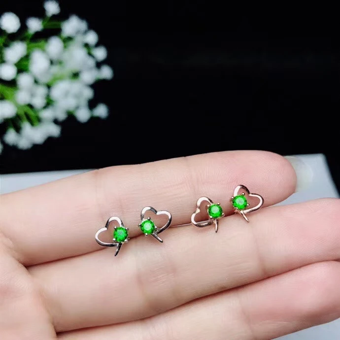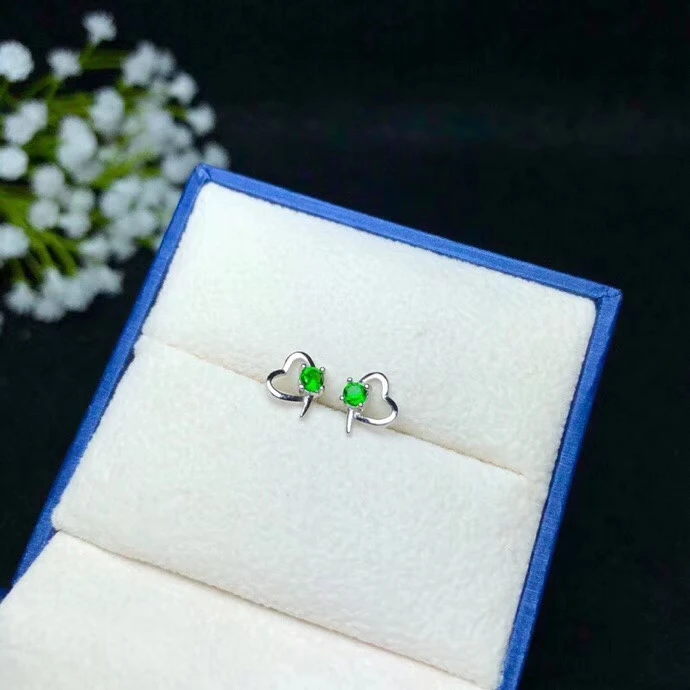 Натуральные зеленые сережки-гвоздики с диопсидом, серьги из серебра 925 пробы, серьги с натуральными драгоценными камнями, милое сердце для девочки, подарок на вечеринку, изящные серьги, ювелирные изделия