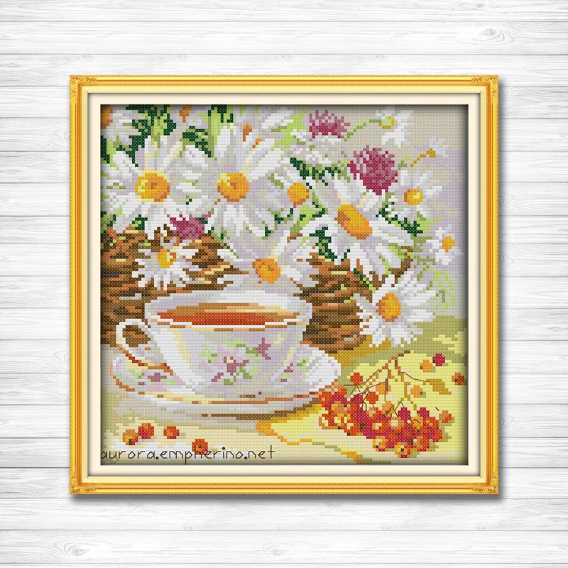 Afternoon tea coffee flowers Daisy painting counted printed on canvas DMC 11CT 14CT kits Cross Stitch embroidery needlework Sets