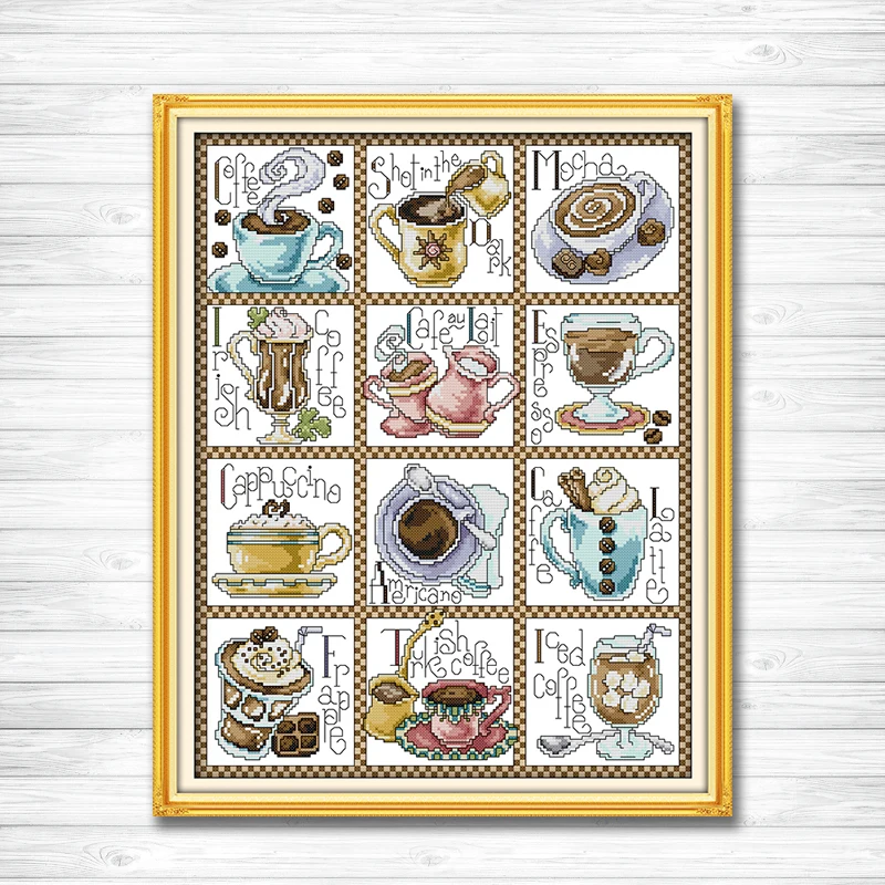 12 months of coffee 11CT Pattern Counted on the Canvas DMC 14CT Cross Stitch Embroidery kit DIY Needlework Set Home wall Decor