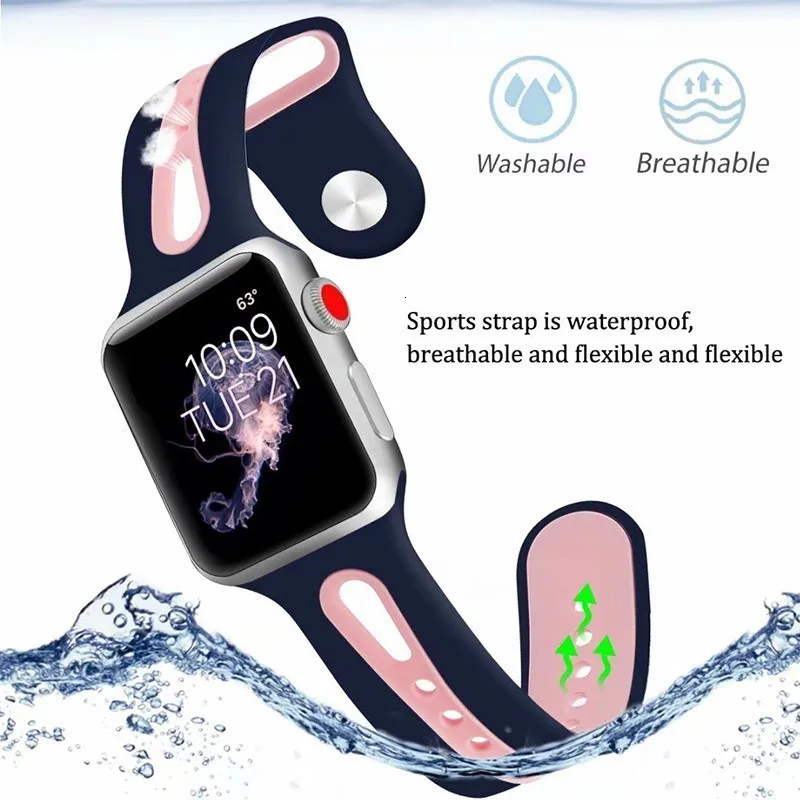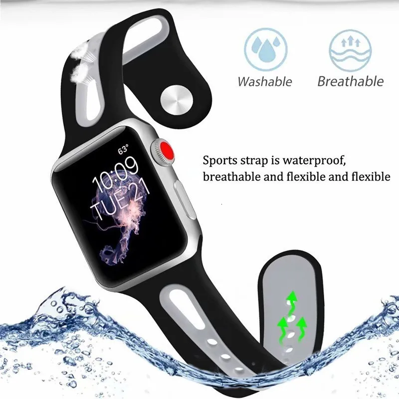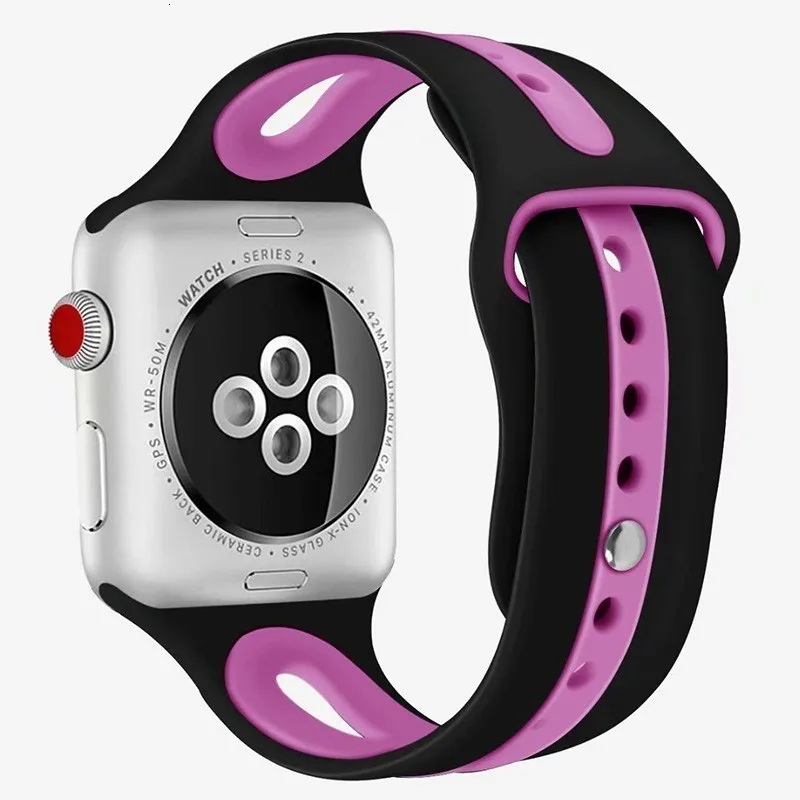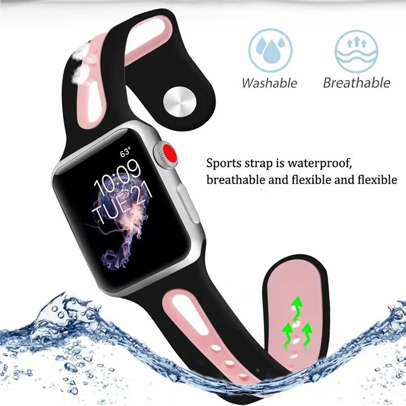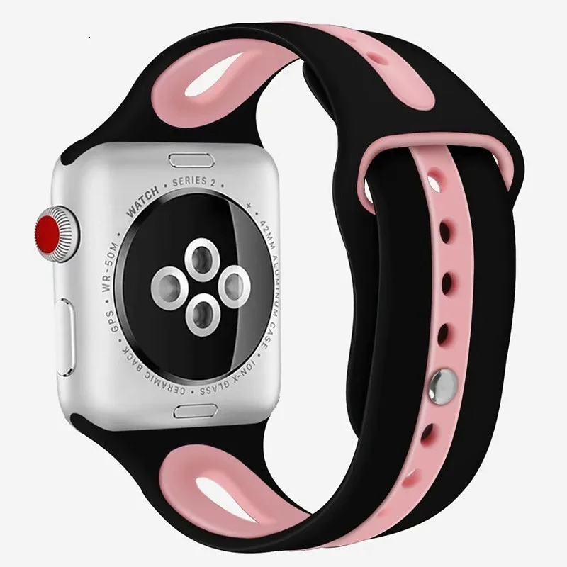 Силиконовый сменный Браслет для Apple Watch, ремешок 42 мм серии 5 4 1 2 3, дышащее отверстие для iwatch 38 мм, ремешок 44 мм, спортивный браслет
