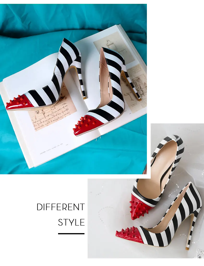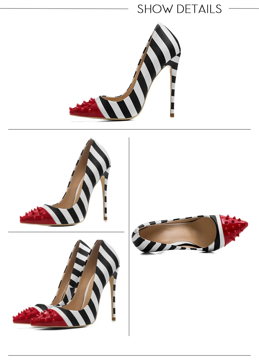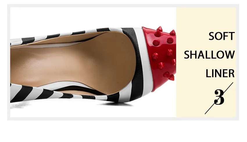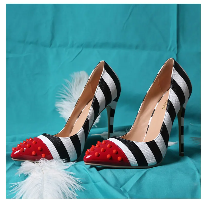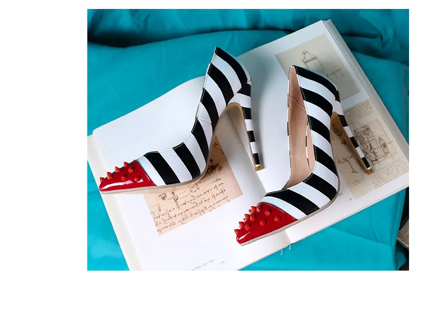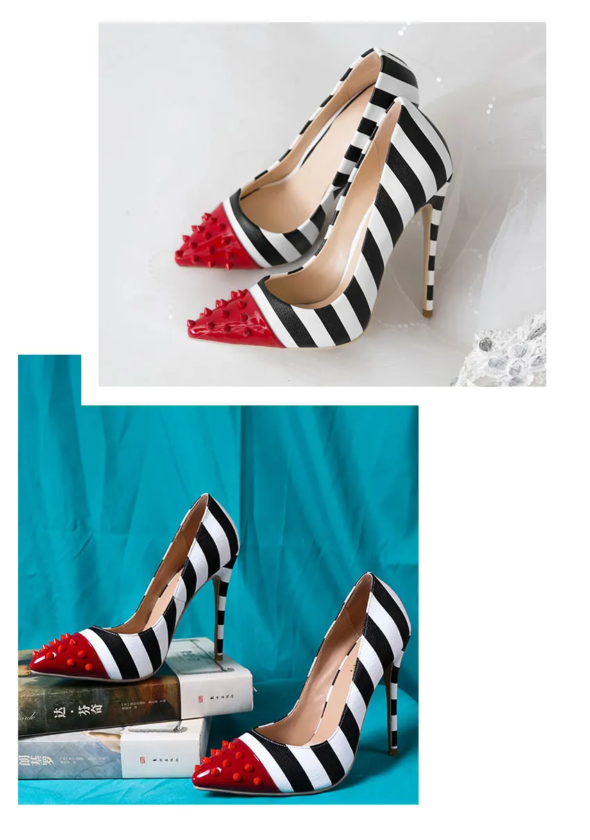 WETKISS/женские вечерние туфли-лодочки на высоком каблуке 12 см, с заклепками, с острым носком, с зебровыми узорами, весна 2019