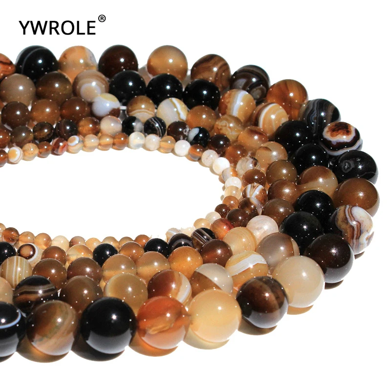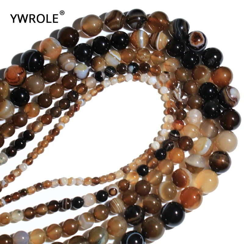 Оптовая продажа натуральный кофе в полоску Агат коричневый натуральный камень круглые бусины хрустальные бусины для изготовления ювелирных изделий 4/6/8/10/12 нитка 15''