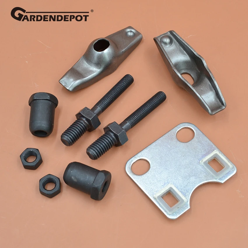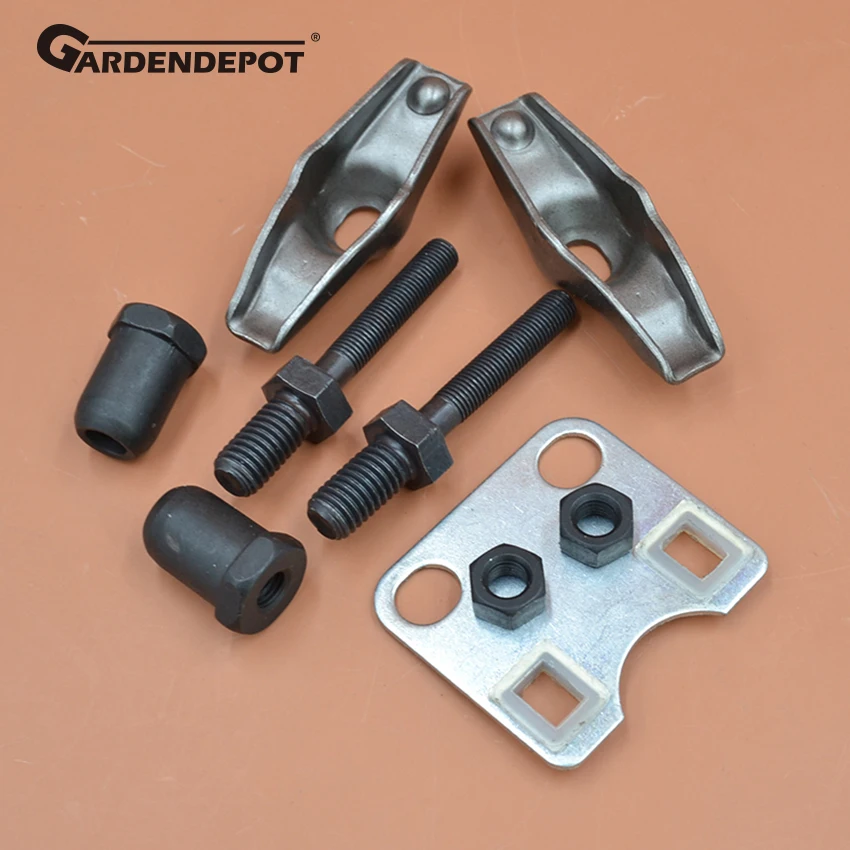 Рокеры клапанов толкатель направляющая пластина Болтовая шпилька Гайка подходит для GX120 GX160 GX200 5.5HP 6.5HP бензиновый двигатель Описание продукта Для Honda GX160 5.5HP GX200 6.5HP двигателяЗамена OEM: 14791-ZE1-010, 90012-ZE0-010, 14431-ZE1-000, 14451-ZE1-013-90206-ZE1-000Включает: 1 х направляющая пластина, 2 х болт, 2 х рокеры клапанов, 2 х гайка, 2 х шпилька