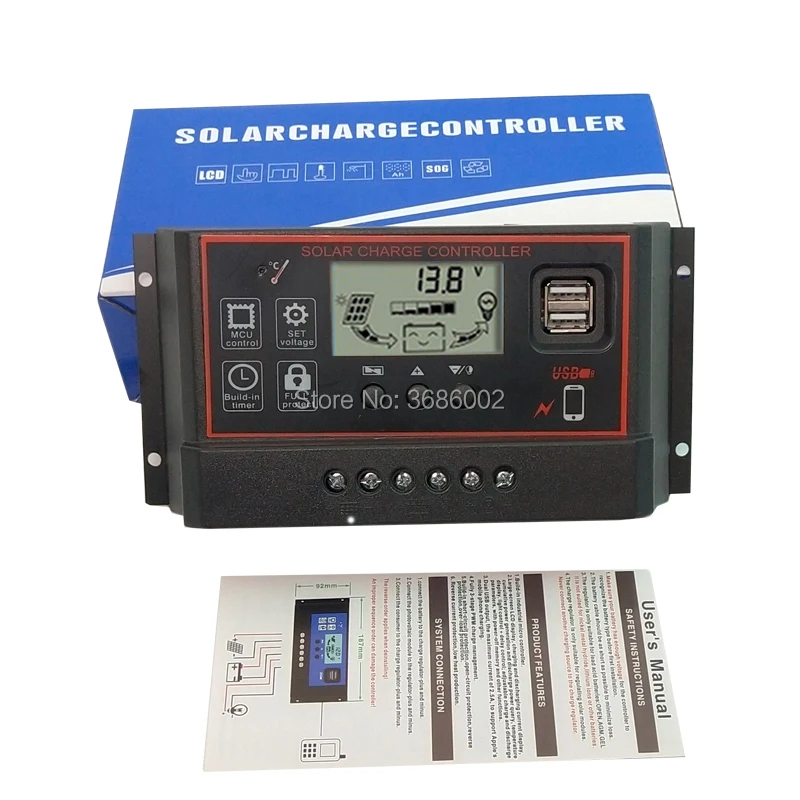Новый 60A/50A/40 ампер LCD Солнечный PV Контроллер заряда регуляторы DC 24 V Солнечное зарядное устройство контроллер DC 12 V Солнечное зарядное устройство 5 V USB