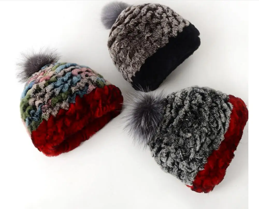 Милые меховые шапки для женщин, Пушистая Шапка с меховым помпоном, настоящий мех кролика, шапка на зиму и осень, крутые шапочки, новый дизайн H149