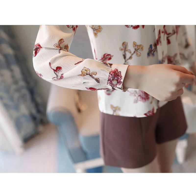 Новинка модный принт женская шифоновая блузка с низким вырезом рубашка 2018