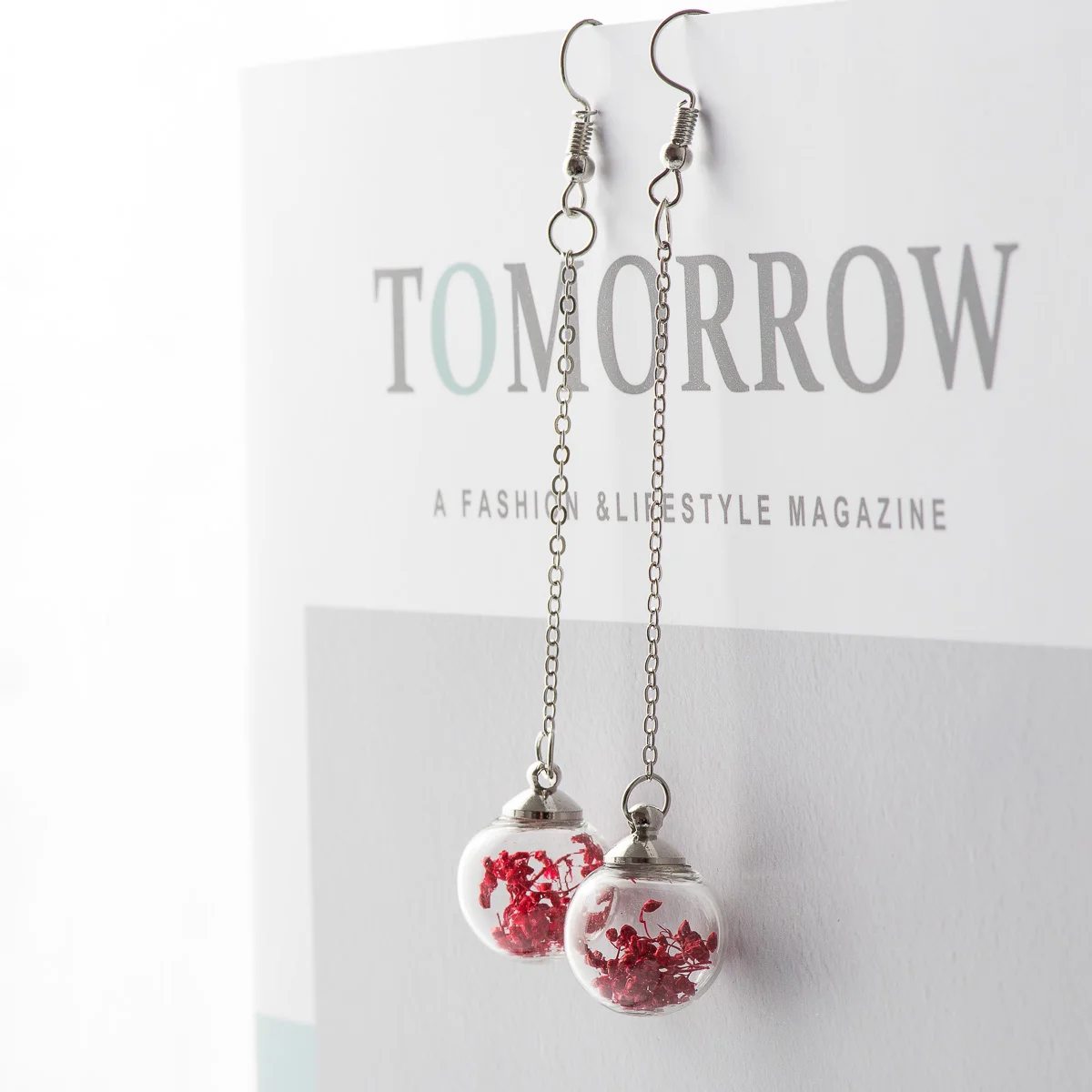 Название: серьги-капли в форме цветка, высушенные цветы в стеклянном шарике, фантазийные серьги «сделай сам», серьги в виде ушей, свисающие серьги для женщин # HZ229