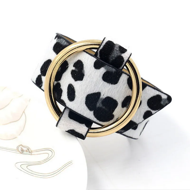 Rainbery 2020 широкий Леопардовый Браслет из искусственной кожи, разноцветный металлический золотой большой круг, браслет, женские браслеты, ювелирные изделия