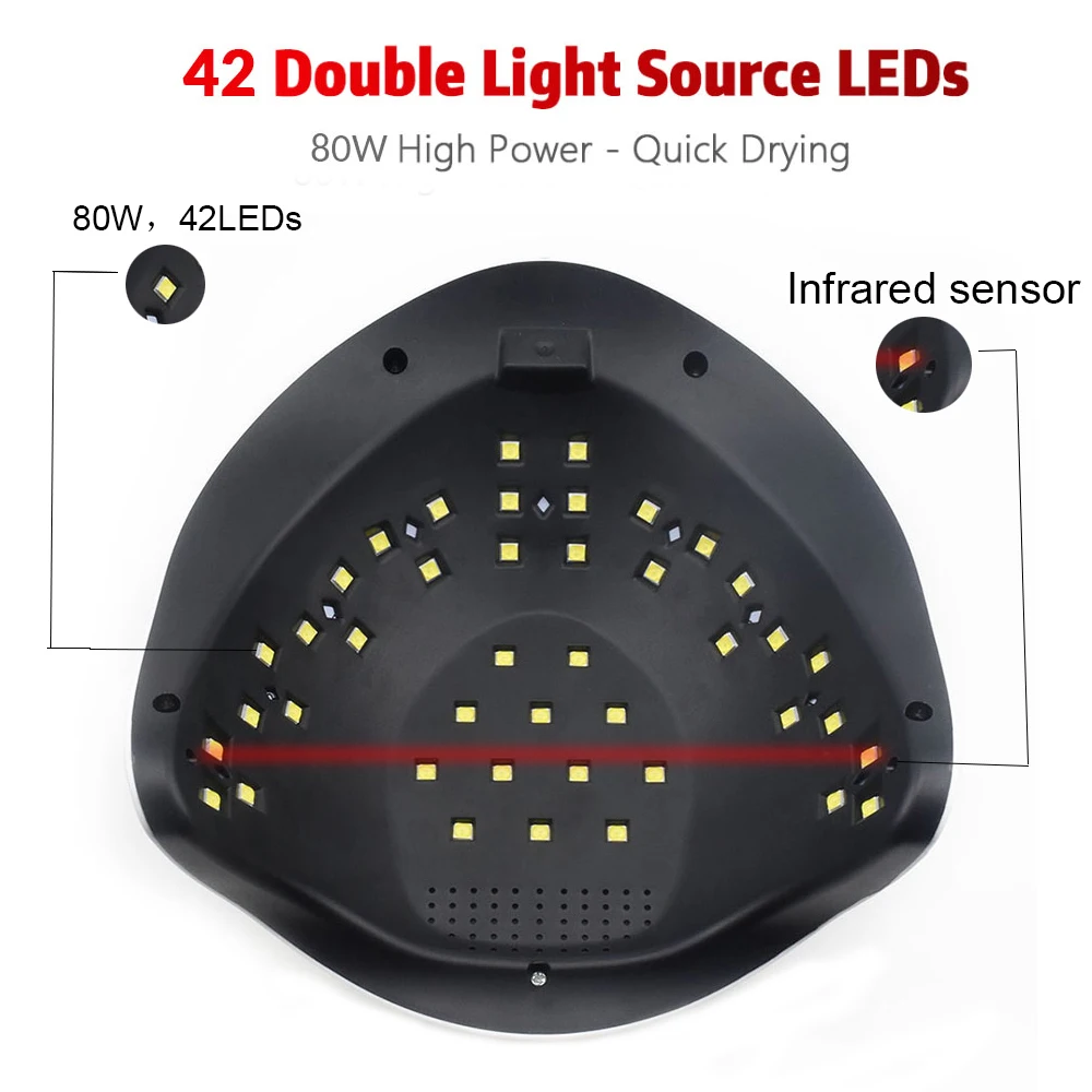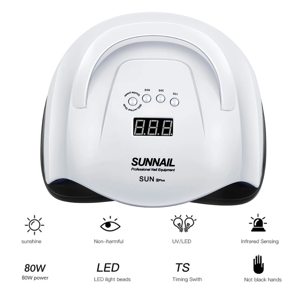 Модель: SUNX PLUS Мощность:80 Вт 42 светодиода Длина волны: 365 + 405нм Тип геля: УФ-гель/светодиодный гель/строитель/Твердые гели Срок службы: 50000 часов Адаптер: Номинальная мощность 100-240 В 50/60 Гц 1 А Вес: 650 г Комплектация: 1x лампа для ногтей с бутоном 1x Руководство пользователя 1x Шнур Питания