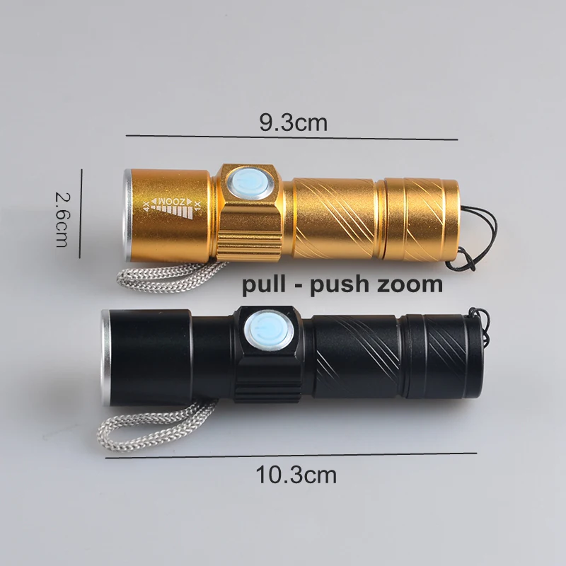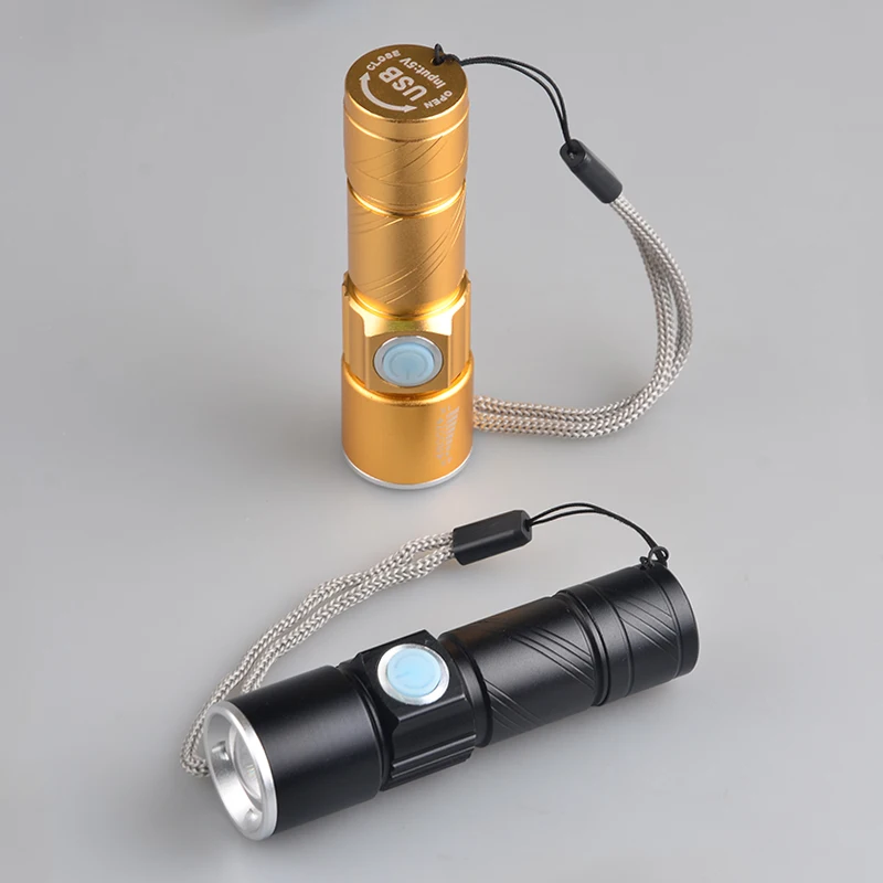 Мини USB перезаряжаемый светодиодный фонарь 3 режима масштабируемый фонарь светильник черный или золотой