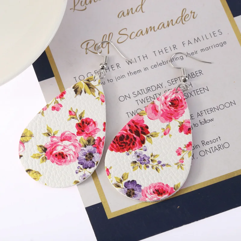 Новые Классические серьги из кожи с цветами, массивные серьги, кожаные каплеобразные серьги, ювелирные изделия, модные большие серьги, бесплатная доставка
