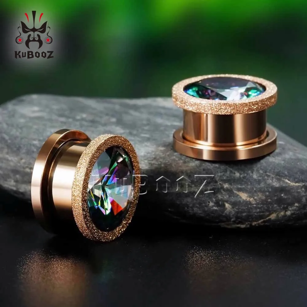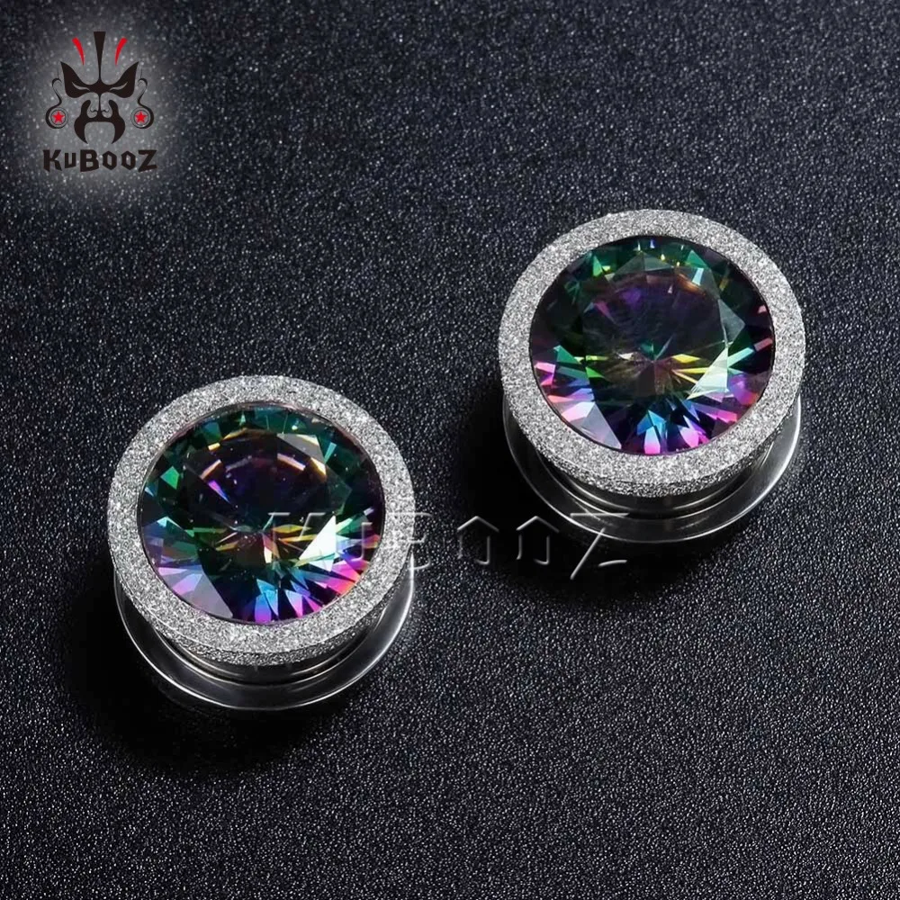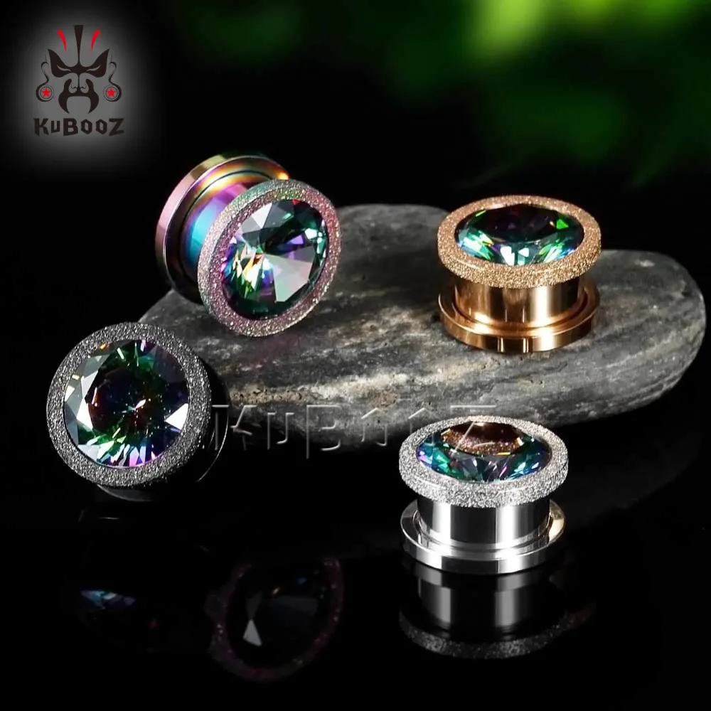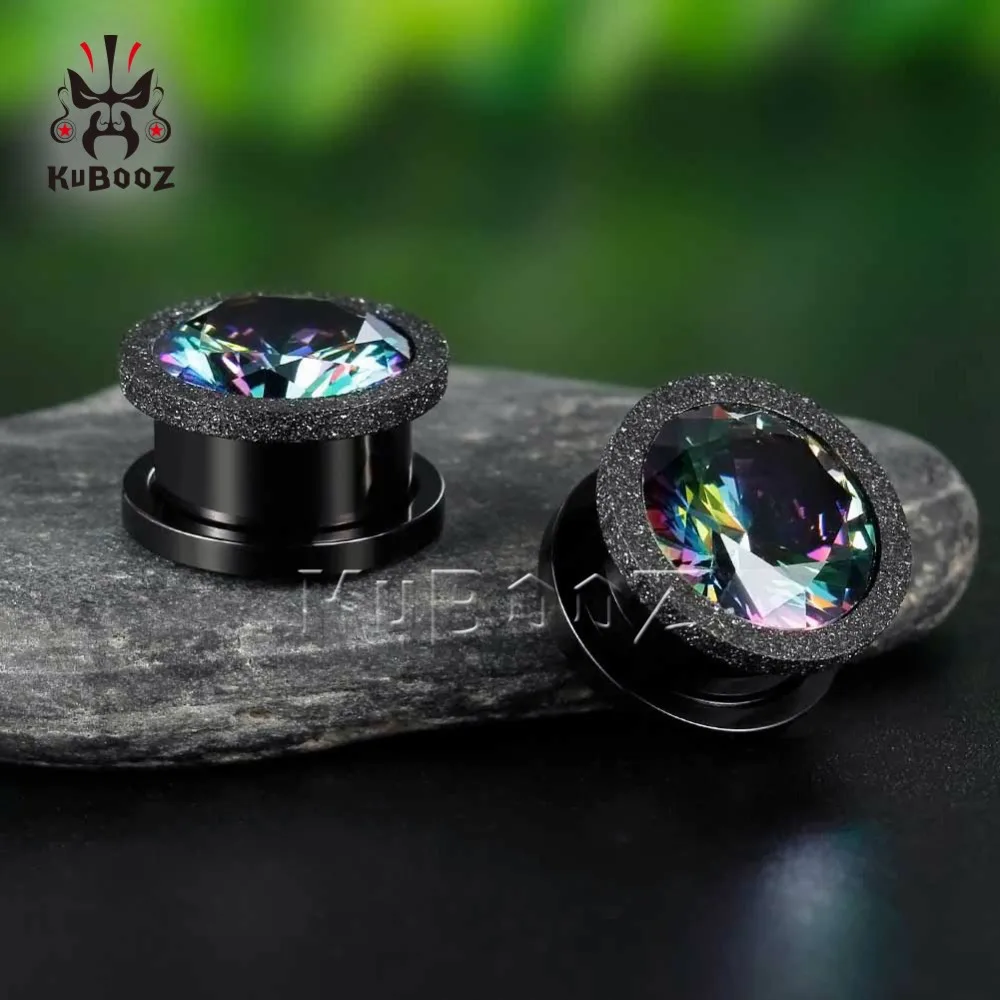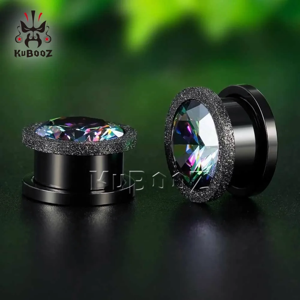KUBOOZ Ear Plugs Tunnels Gauges Stainless Steel Screw Zircon Crystal Grind Arenaceous Fashion Body Jewelry Piercing Earring Gift