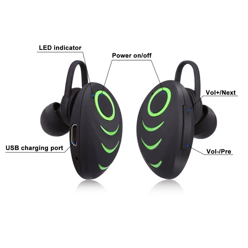 Параметры: Тип: Bluetooth наушники Стиль: в ухо Связь: Беспроводной Протокол Bluetooth: 4,0 Чувствительность: 123dB Канал: стерео Цвет: черный, красный, синий, зеленый, розовый Диапазон частотного отклика: 20-20000 Гц Батарея: 3,7 в 75 мАч Сопротивление: 32Ω Дальность передачи: 10 метров Время зарядки: около 1-2 часов Продолжительность звонков: 5-6 часов Время в режиме ожидания: 180 часов Принцип звучания: Динамический Функция: Поддержка музыки, Голосовое управление, функция вызова, Многоточечное соединение Особенности: -Bluetooth 4,0 CSR стерео наушники-вкладыши. Прекрасно переносит музыку HD без потерь. Чип Bluetooth 4,0: один из лучших чипов Bluetooth, который может передавать данные на высокой скорости и приносить вам гладкий музыкальный опыт, не беспокоясь о беспорядок кабелей! -Встроенный микрофон для громкой связи. -HIFI стерео музыка + звонки, приносит вам высокое качество звука стерео звука. Высококачественные Звуковые эффекты CD. -Подключение двух мобильных телефонов одновременно. -Удобный для кожи эргономичный дизайн, ушной крючок в форме ушной раковины, резиновое покрытие, идеально прилегает к ушам, высококачественные материалы, обеспечивая гарнитуру комфортной для ежедневного использования. Удобно и надежно при занятиях спортом. -Уменьшает шум, ветер и эхо. Они блокируют большинство шумов вокруг вас и дают вам личное пространство в середине толпы. -Они управляются: воспроизведение, следующая песня, громкость вверх и вниз, сбор и подвешивание телефонных звонков. Они даже позволяют вам позвонить на последний звонок! -Сильный Совместимость. Будет работать с любым Bluetooth с поддержкой устройства и A2DP с поддержкой устройств, таких как MP3, MP4, iPad, iPhone, iPod, Android, смартфонов, планшетов и т. д. -Скажите да, чтобы ответить на звонок, нет, чтобы отклонить. Посылка включает в себя: 1x Bluetooth наушники 1x USB кабель