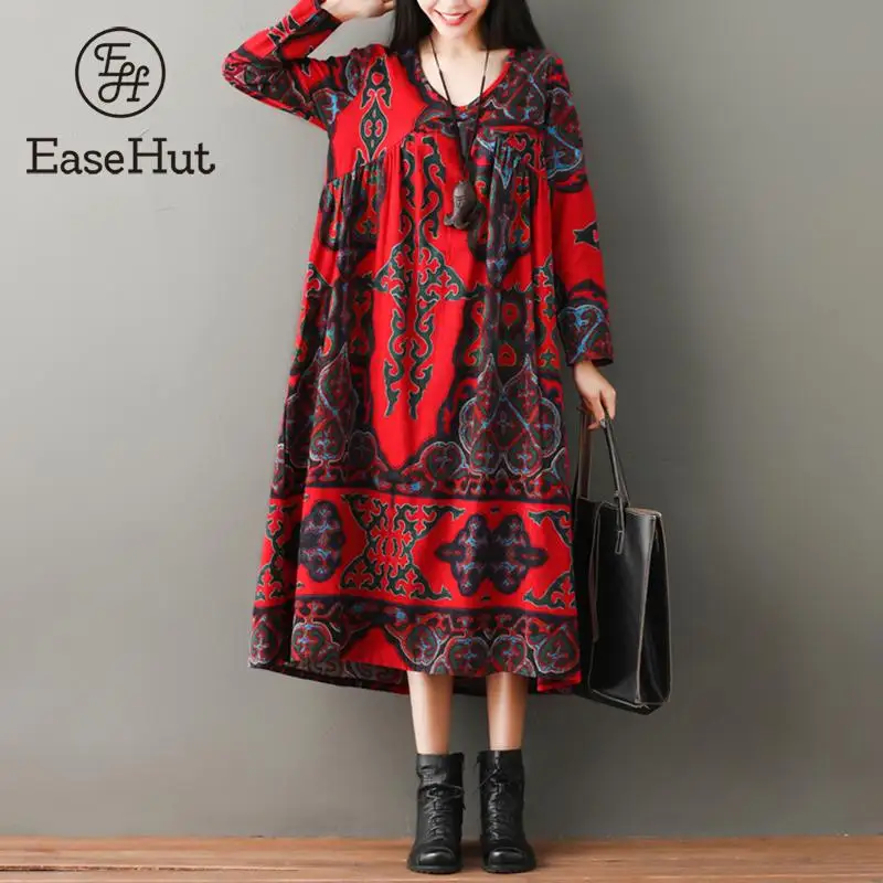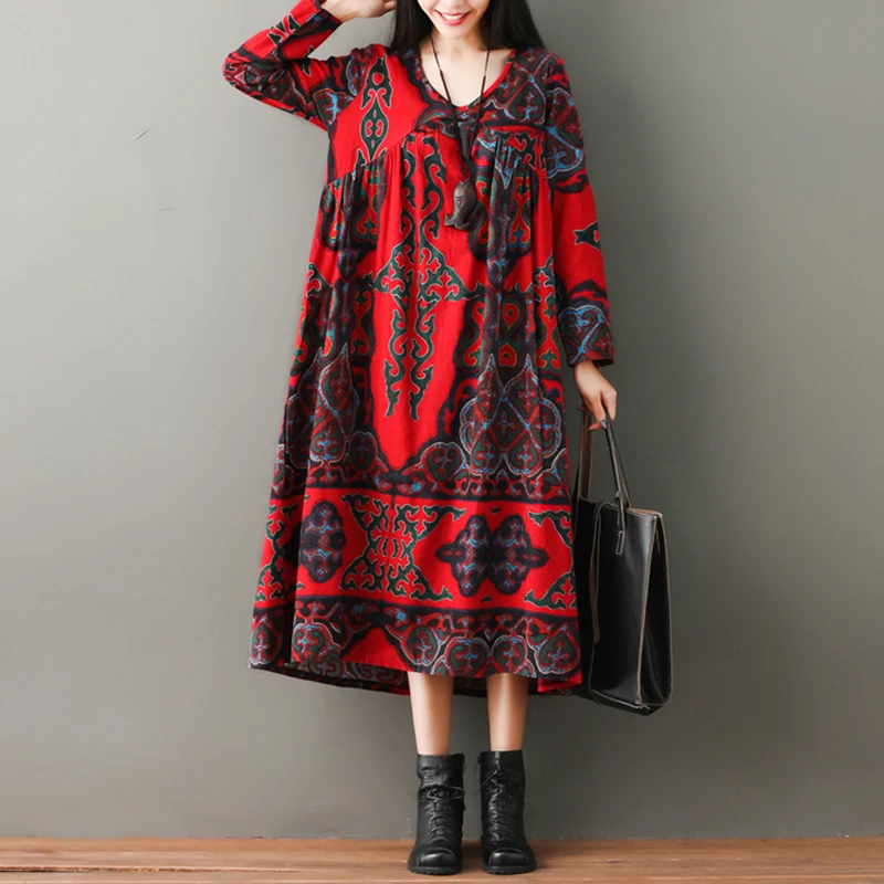 Это платье большого размера имеет повторяющийся РЕТРО ПРИНТ, сексуальный v-образный вырез, длинный рукав и мешковатый стиль. Соедините его с некоторыми ботинками, чтобы завершить образ.