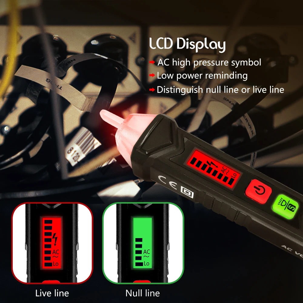 Бесконтактный Тестер Напряжения переменного тока детектор напряжения, чувствительность регулируемые электрические инструменты Ручка Тип цепи тест ers автоматическое отключение звука и светодиодный тревожный AC 12-1000 В тест карандаш с фонариком