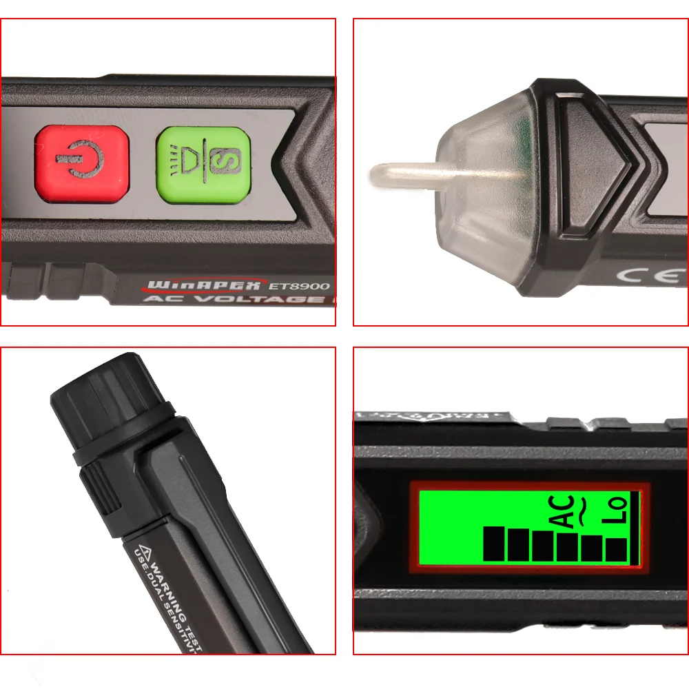 Регулируемая чувствительность: Двойной диапазон 12 В-1000 В/48В-1000 В-Выберите различный диапазон в соответствии с вашими потребностями Различный тест напряжения и двухдиапазонный тест-различение живого и нулевого провода через различный сигнал тревоги частоты; По умолчанию диапазон измерения напряжения переменного тока составляет 48-1000 В, он также может измерить 12-1000 В, регулируя чувствительность. Который удовлетворяет потребности в выборе наиболее подходящей чувствительности перед тестированием в различных случаях и различных объектов. Бесконтактный Тестер Напряжения-он будет мигать и звуковой сигнал, когда устройство близко к напряжению переменного тока больше во время указанного диапазона напряжения без прикосновения к измеряемому объекту, А также с звуковым сигналом и светодиодный индикатор для поддержки достаточно безопасного измерения Светодиодный светильник и Индикатор низкого напряжения-яркий светодиодный индикатор низкого напряжения и сигнал тревоги могут предупредить вас о необходимости вовремя заменить аккумулятор, в то время как белый светодиодный светильник позволяет работать даже в темной среде; автоматическое отключение питания после бездействия в течение 5 минут для экономии энергии Безопасный звук и светильник с частотой напряжения можно отличить звуковым сигналом и светодиодный индикатор. Он достаточно громкий, чтобы услышать умеренный шум машинного оборудования. Маленький размер, легко хранить в ящике для инструментов или носить с собой в кармане