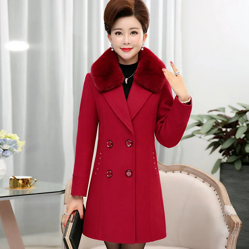 Зимнее женское Шерстяное Пальто 2018 модная двубортная темпераментная куртка средней длины большого размера с меховым воротником шерстяная Верхняя одежда DT0451