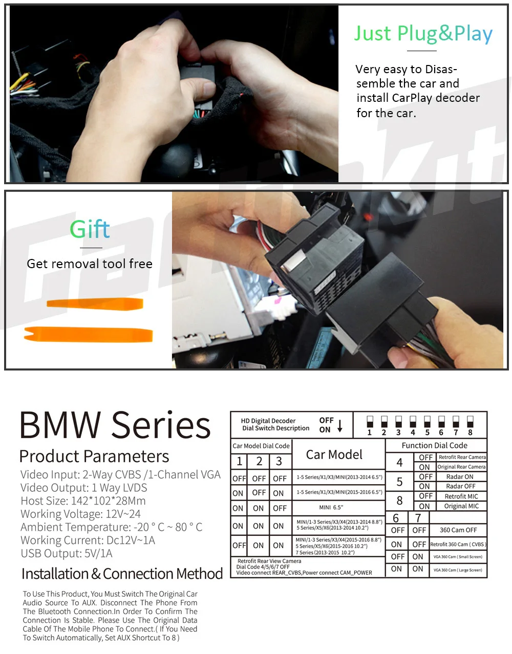 Этот продукт для ссылка предназначена проводной версия для BMW НБТ 6,5 дюймовым экраном. Пожалуйста, проверьте, что вы видите на экране размер перед размещением заказа. Этот продукт ссылка не продаем длянбтнавигация 8,8 ''и 10,25'' широкоэкранный.